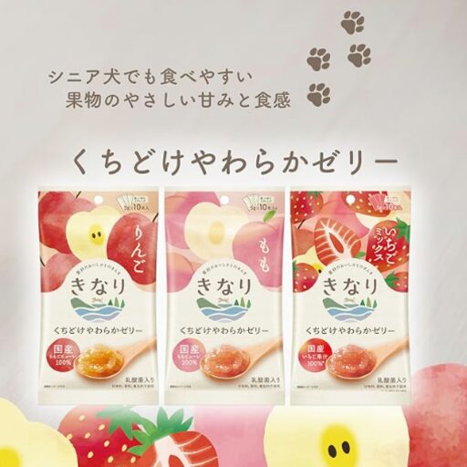 豊富なフレーバーで飽きさせない: りんご、もも、いちごミックスなど、様々な味が楽しめるバラエティセット。愛犬の好みに合わせて選べます。